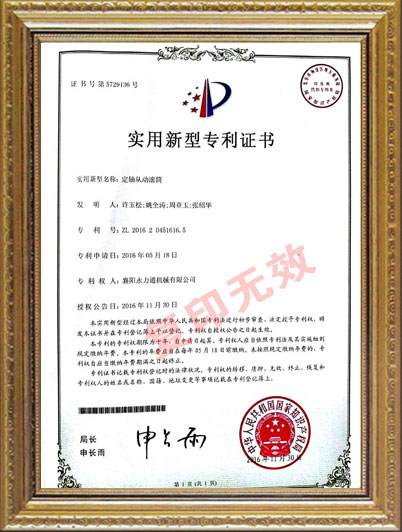 • 定軸從動滾筒實用新型專利證書