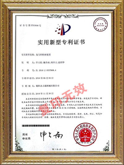 • 龍門回轉座裝置新型專利證書